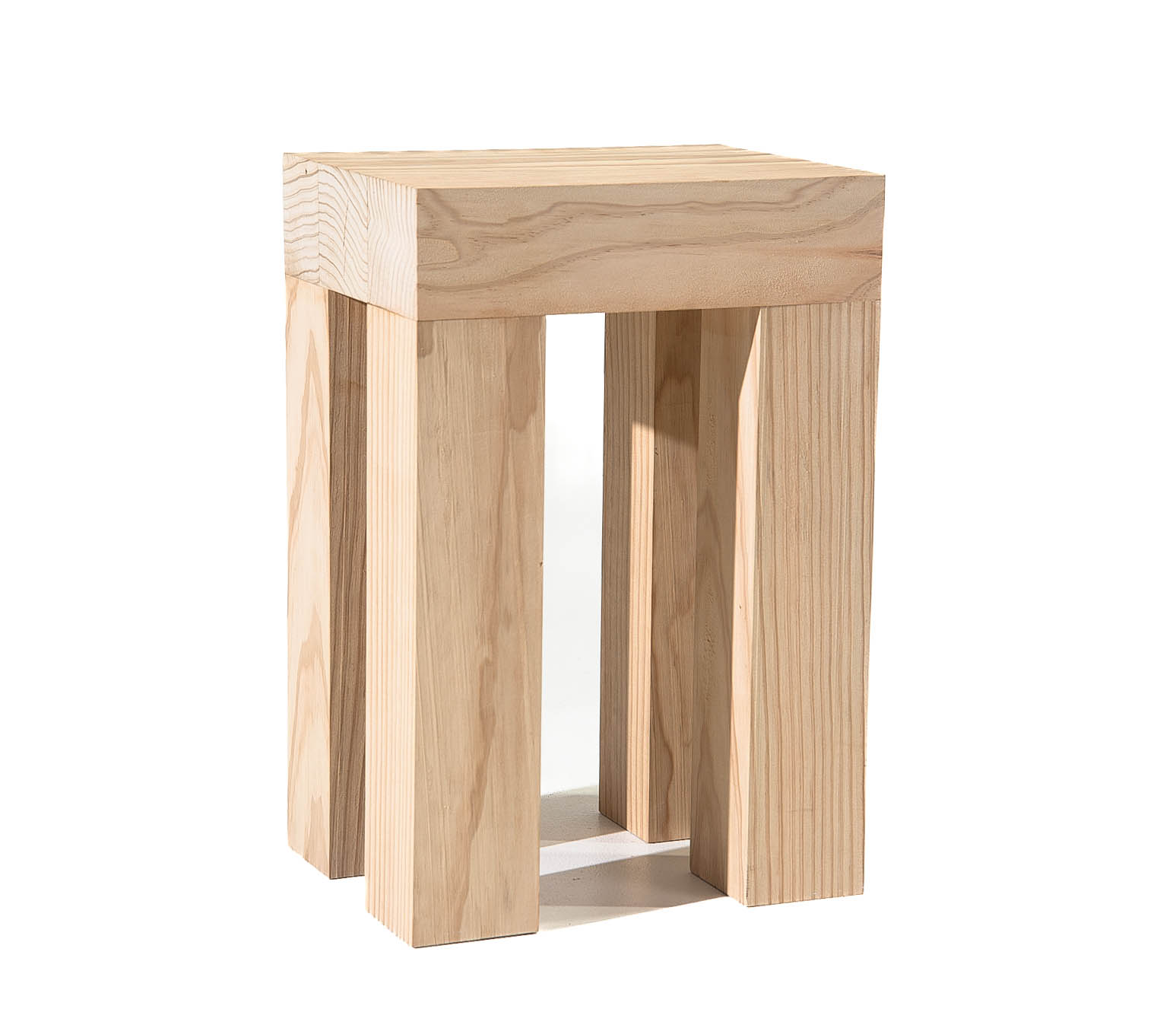 Blocked showcases a fondness for simple materials and techniques. Its design embraces a brutalist style with clean lines and strong features that emphasize the natural beauty of Pine's stripes. The piece was shaped fluidly, akin to a sketch, and crafted within hours before being securely clamped and joined. This deliberate method yields an engaging piece that harmonizes craftsmanship and artistic flair.